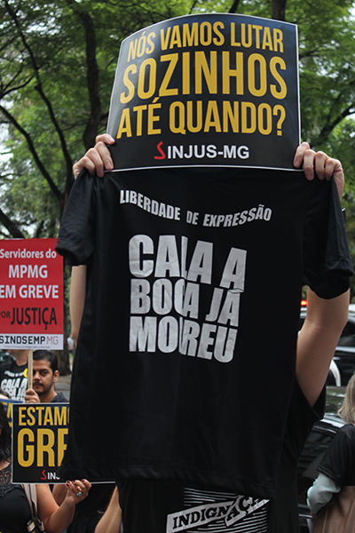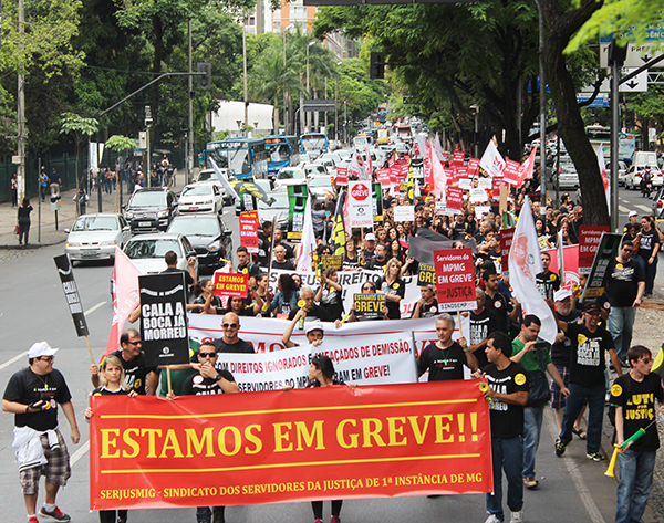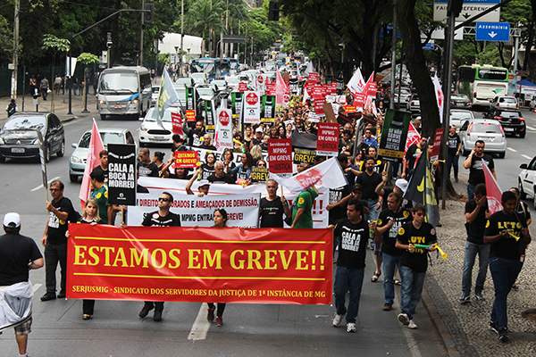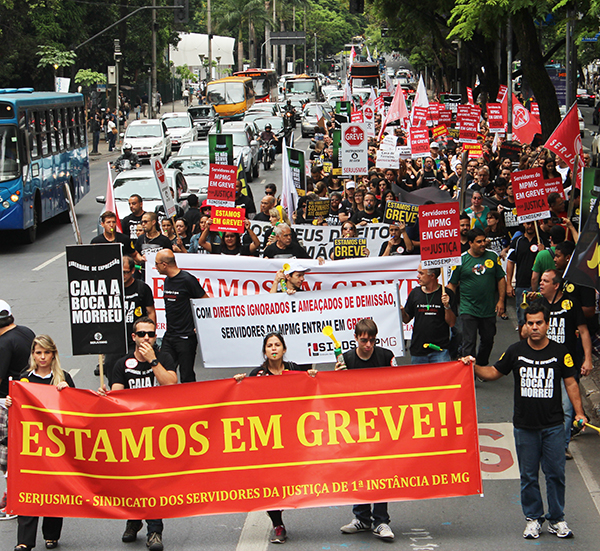 Sem desanimar e embalados por vários gritos de guerra, os Servidores caminharam do Palácio da Justiça até a Praça Sete, onde deixaram os grevistas do MP, para depois retornarem. A marcha tomou uma pista da Avenida Afonso Pena e contou com o apoio dos motoristas e pedestres que buzinaram e acenaram para os manifestantes.
