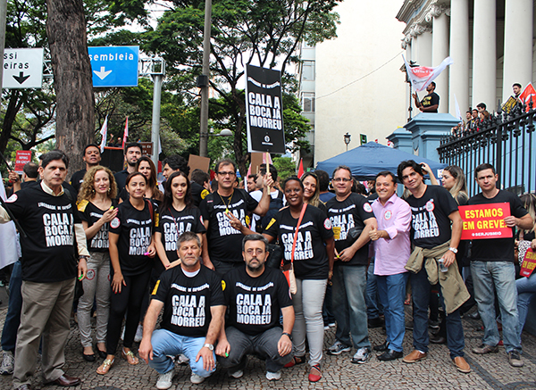 Concentrados a partir das 11 da manhã, em frente ao Palácio da Justiça, Servidores de dezenas de comarcas do estado aderiram à greve geral da 1ª instância, deflagrada hoje, e participaram do Ato conjunto, onde protestaram contra as injustiças cometidas pelas duas instituições. Os manifestantes reivindicaram o cumprimento da revisão-geral das categorias, assegurada na Constituição Federal e por lei estadual, mas que vem sendo desrespeitada pelas administrações das duas Casas.