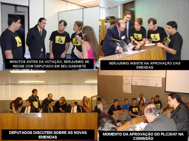 Embora o deputado tenha argumentado que os assuntos não eram da competência daquela Comissão, e sim, da Comissão de Administração Pública, o SERJUSMIG insistiu e o parlamentar resolveu, em acordo com os demais deputados presentes, acatar as emendas.