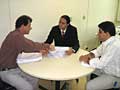 Na última semana, o 1° e o 2° vice-presidentes do SERJUSMIG, respectivamente, Luiz Fernando Souza e Rui Viana, percorreram vários gabinetes da Assembléia Legislativa, reivindicando apoio dos parlamentares à derrubada dos vetos do Governador aos artigos 27, 58, 63 e 67 da proposição da Lei Complementar n° 112/08 (LC105/08). Durante o encontro com o deputado Weliton Prado, os diretores do SERJUSMIG entregaram-lhe o estudo da entidade contendo a defesa da derrubada dos vetos e solicitaram-lhe apoio em mais esta luta dos servidores. O deputado declarou seu apoio, mas, enfatizou que durante a campanha eleitoral o processo de votação de vetos será ainda mais complicado, em virtude do número regimental de votos necessários para a derrubada (39 votos). O dep. Irani Barbosa também recebeu os diretores e manifestou-se sensível às reivindicações dos servidores e disse que poderiam contar com seu apoio. Abordado pelos diretores na saída do Plenário, o deputado Lafayette de Andrada também recebeu toda a documentação elaborada pelo SERJUSMIG e orientou que este trabalho deveria ser direcionado principalmente aos parlamentares que irão compor a Comissão Especial que irá avaliar os vetos.