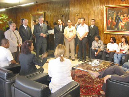 - Durante uma reunião, um grupo de servidores pede medidas urgentes para solucionar problemas no Juizado da Infância e da Juventude.  Sandra Silvestrini recebe servidores e escuta suas reivindicações