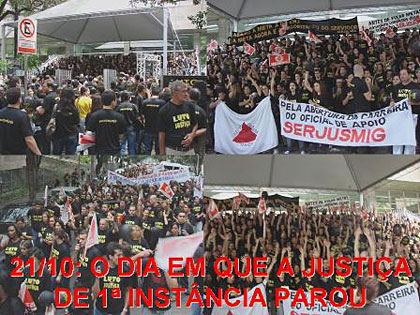 DIA NACIONAL DE LUTA: No dia 21 de outubro, os servidores da Justiça de Primeira Instância do Estado de Minas Gerais páram e protestam contra o aumento da carga horária e pelo atendimento da pauta de reivindicações do judiciário mineiro. A paralisação foi um marco na história do judiciário mineiro!