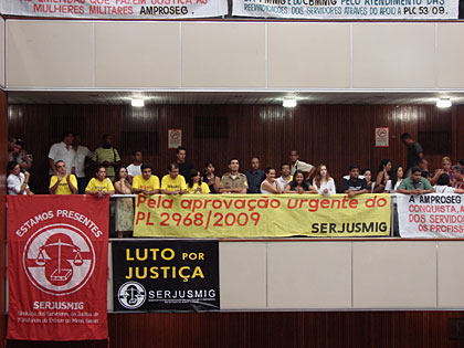 No dia 10, os diretores do SERJUSMIG dedicam o dia para visitar os gabinetes de deputados na ALMG, em prol da aprovação urgente do PL 2.968/09. pela manhã encontra com o deputado Padre João (PT) e na parte da tarde com os deputados Lafayette de Andrada (PSDB) e Délio Malheiros (PV).