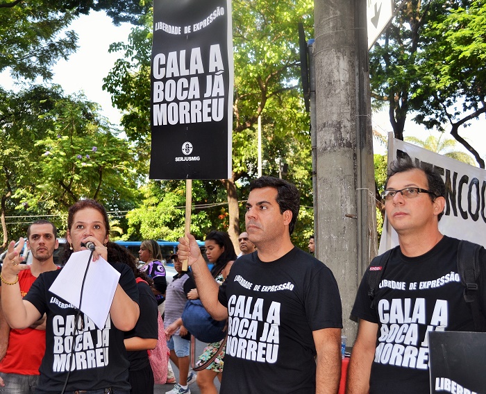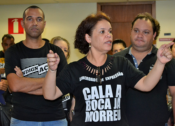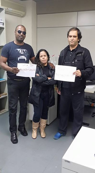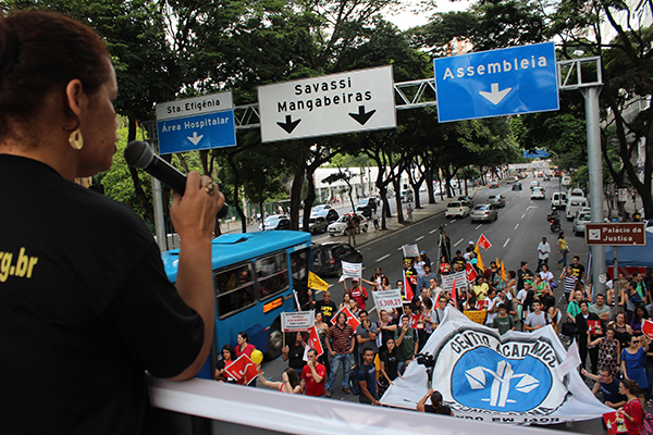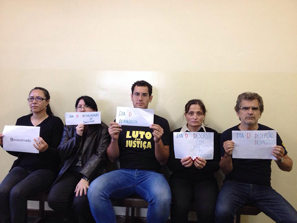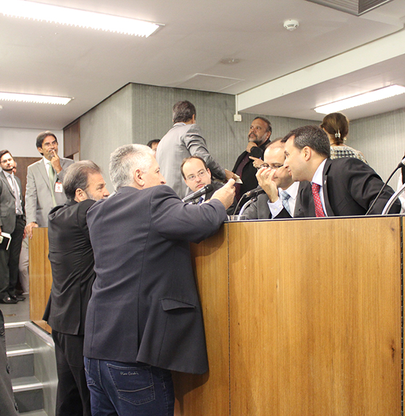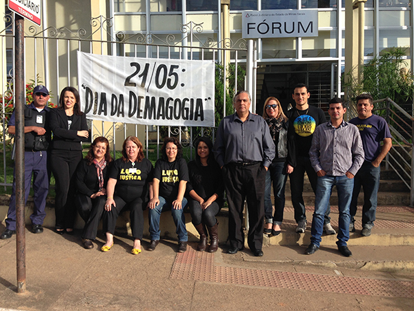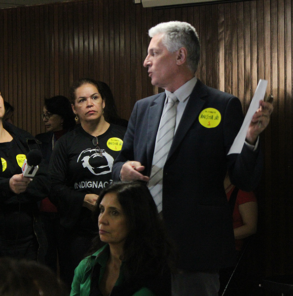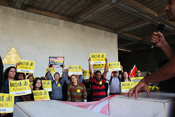 Os deputados fizeram questão de manifestar seu apoio à anistia. Da esquerda para a direita, começando de cima: Dep Federal Weliton Prado (PT); deputados estaduais Professor Neivaldo (PT), Sargento Rodrigues (PDT), Cabo Júlio (PMDB), Cristiano Silveira (PT) e Marília Campos (PT).