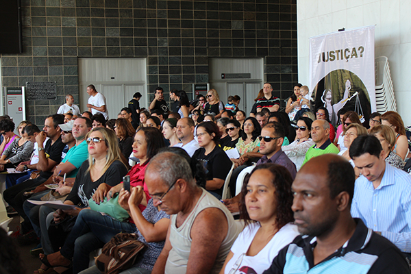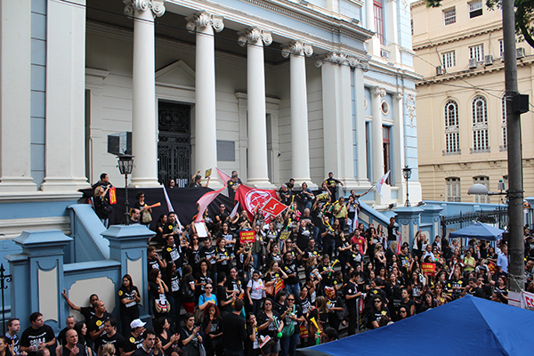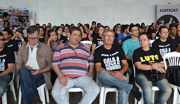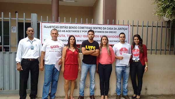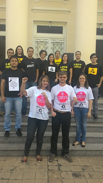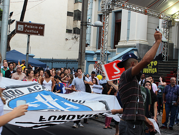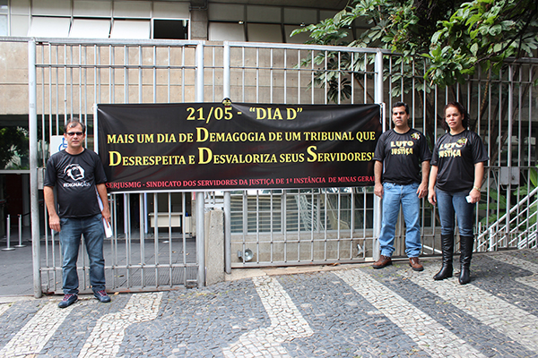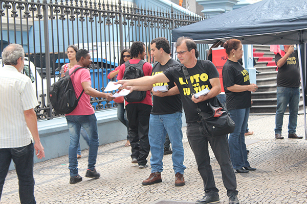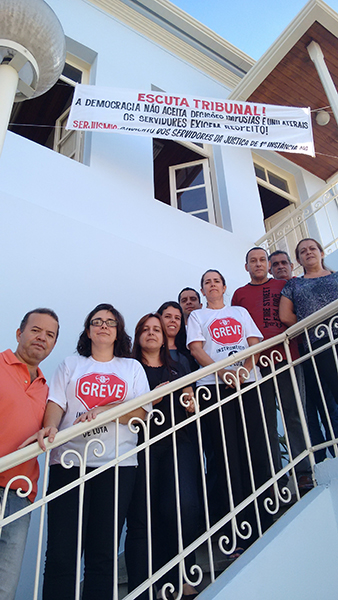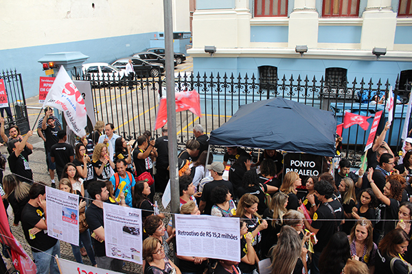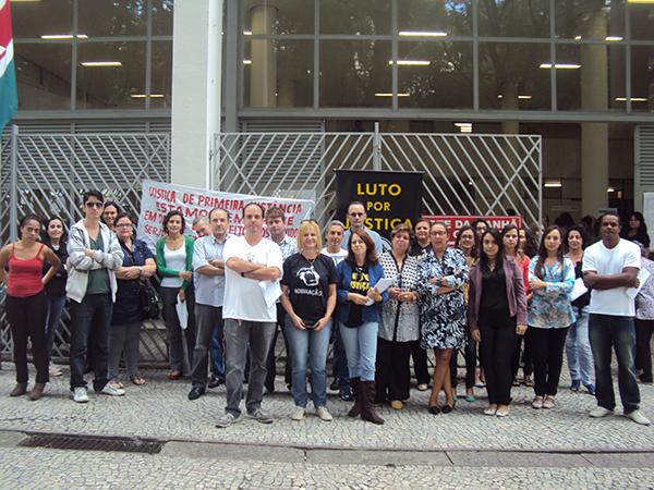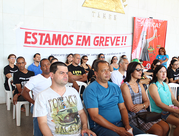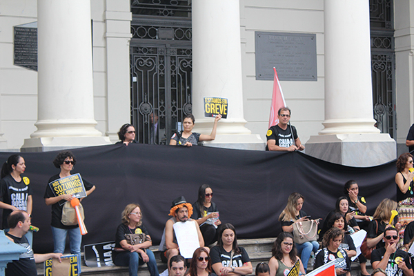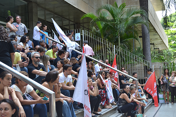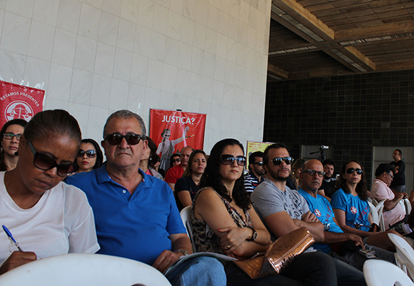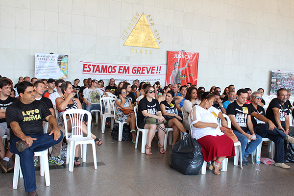 Os grevistas ficaram cerca de duas horas na porta do Palácio da Justiça, aguardando o término da sessão