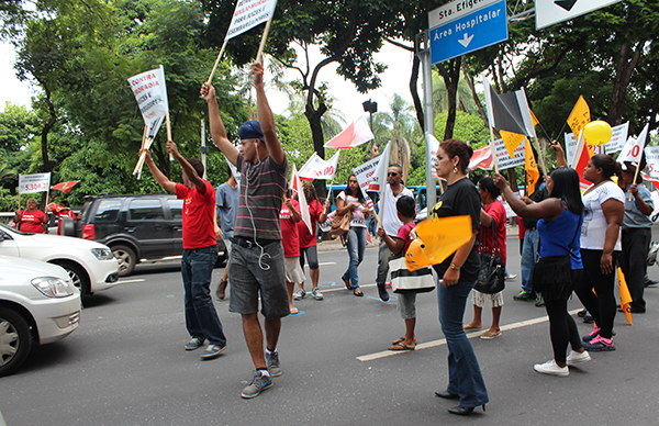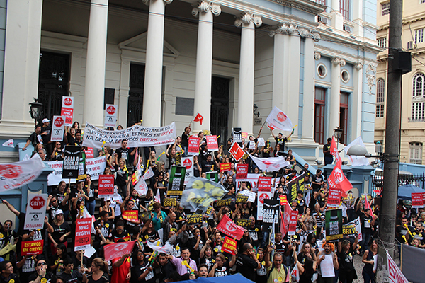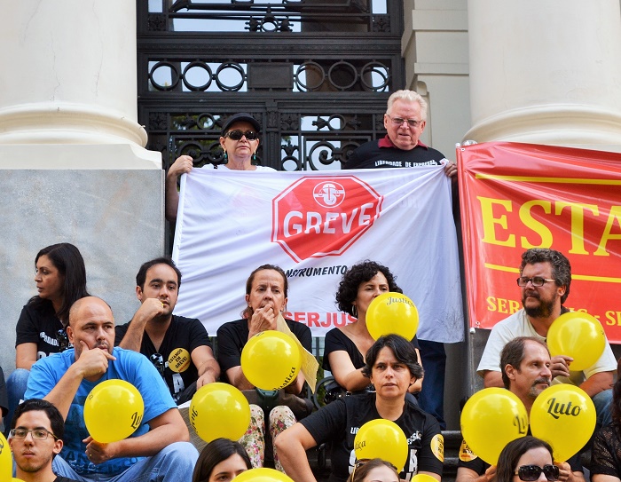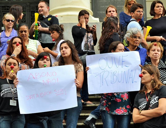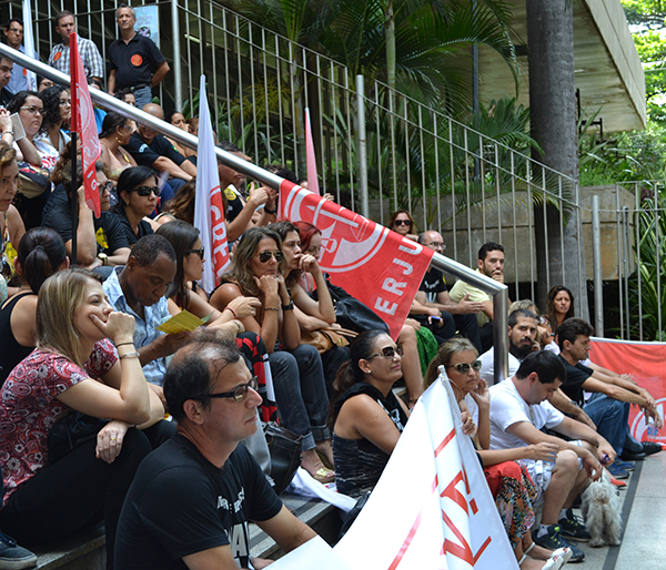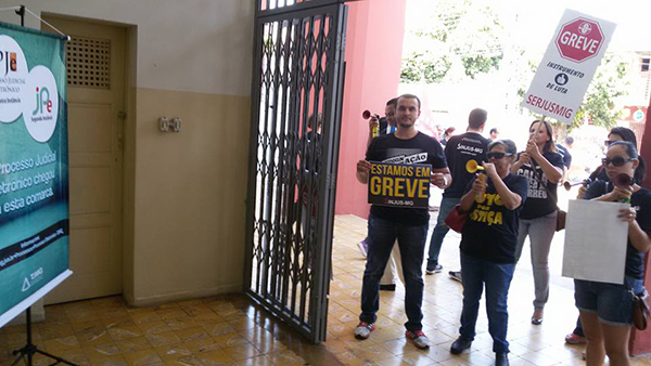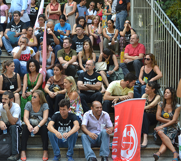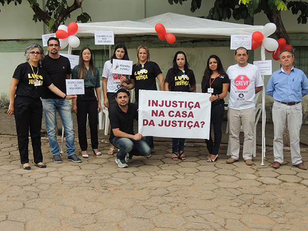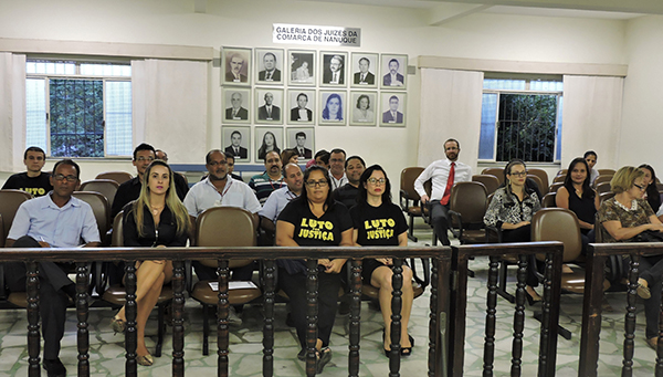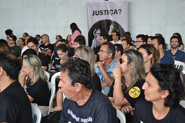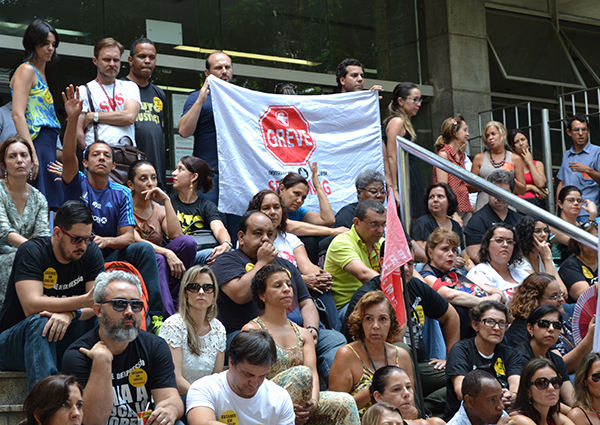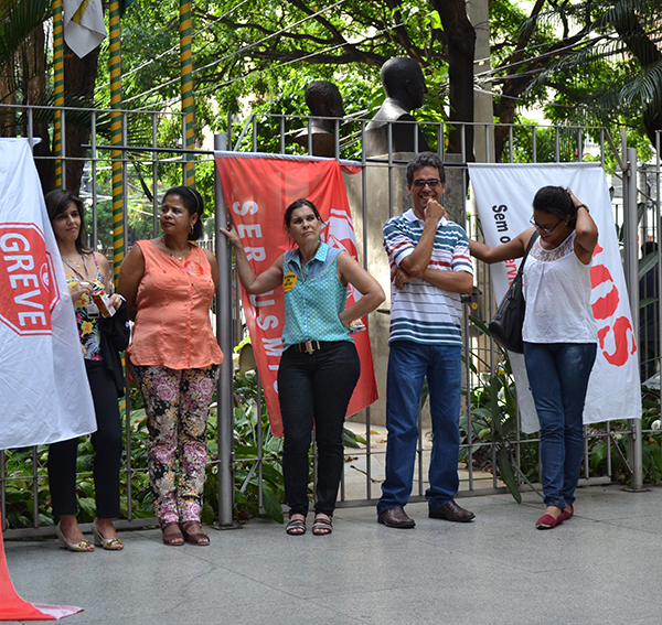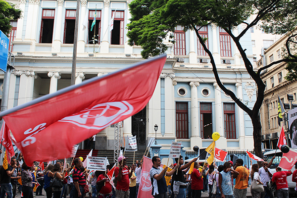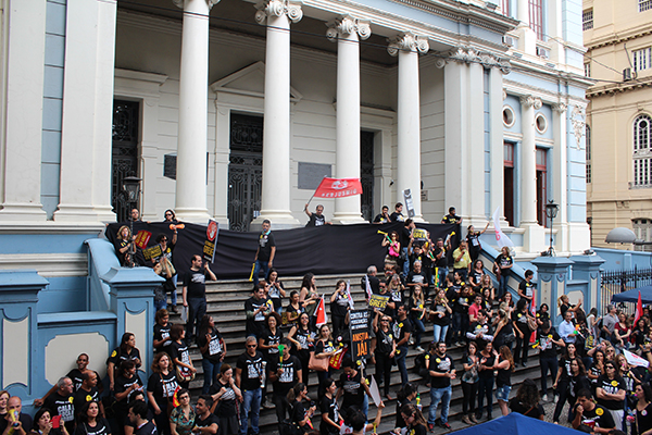 Os grevistas ficaram cerca de duas horas na porta do Palácio da Justiça, aguardando o término da sessão