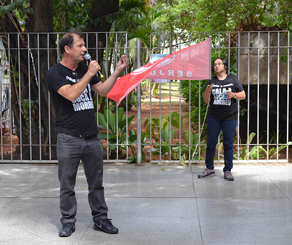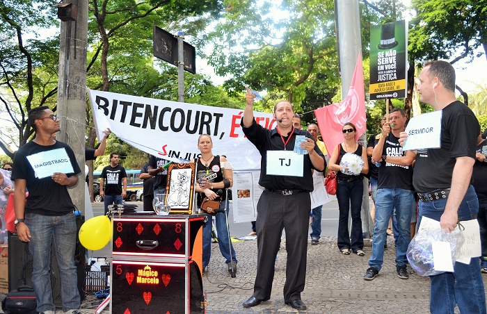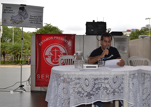 Igor Teixeira, do Sindojus, também falou aos manifestantes sobre a sessão do Órgão Especial