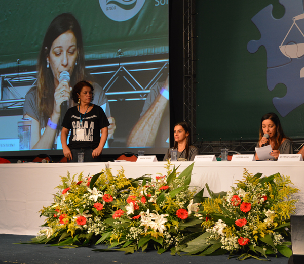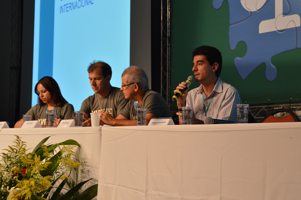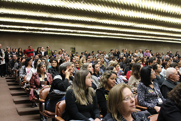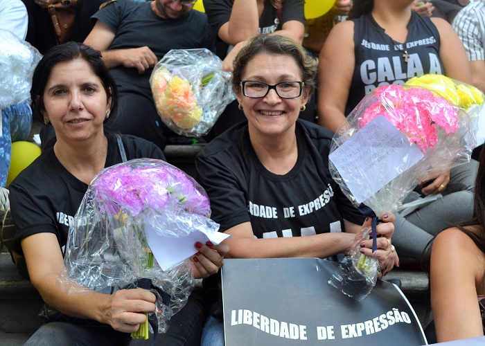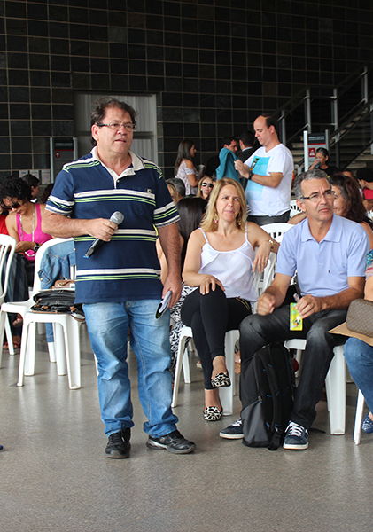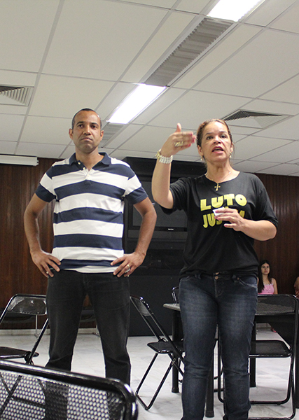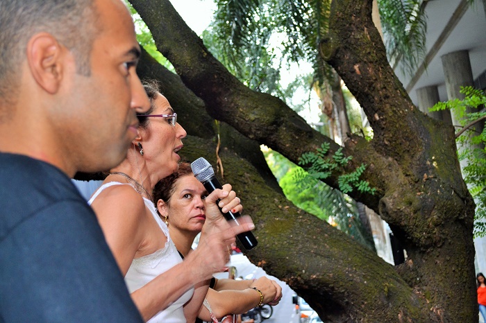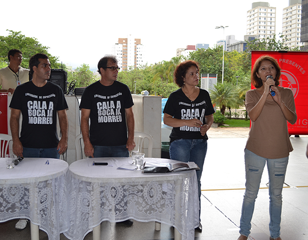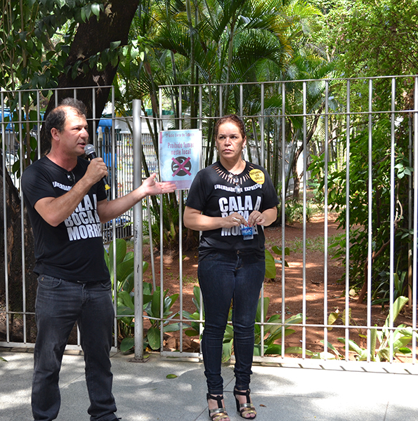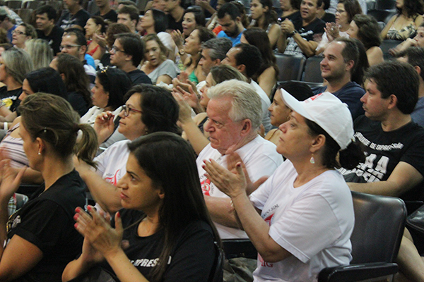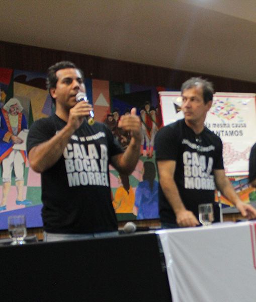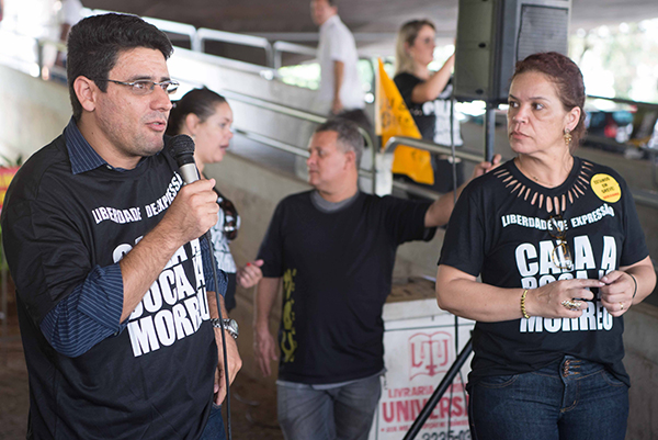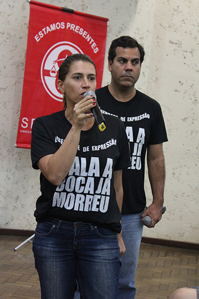 Sandra Silvestrini e Wagner Ferreira falam ao público presente