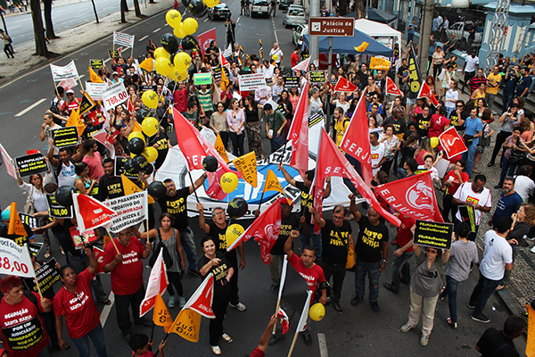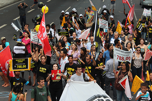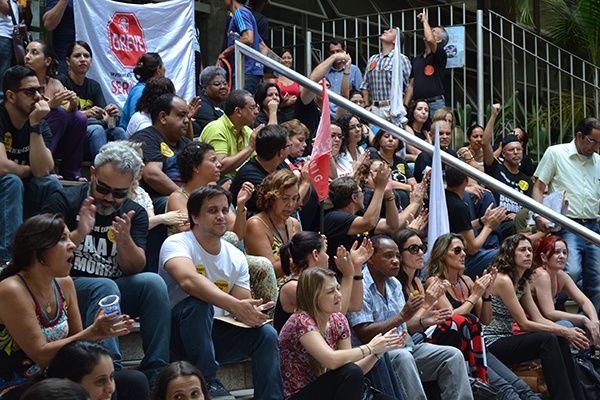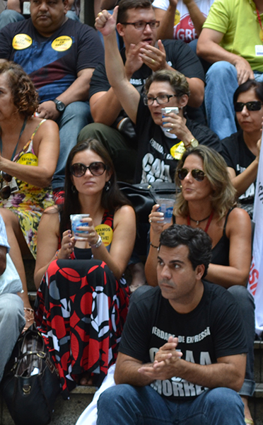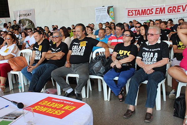 Nas galerias, bandeiras e cartazes, pediam a anistia aos grevistas