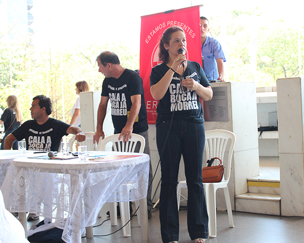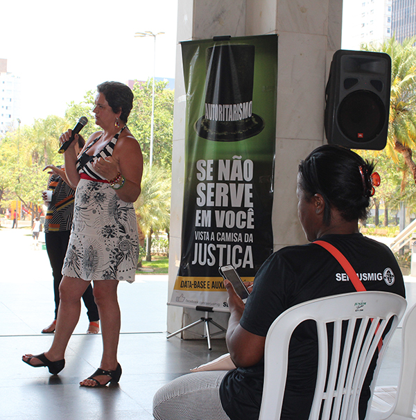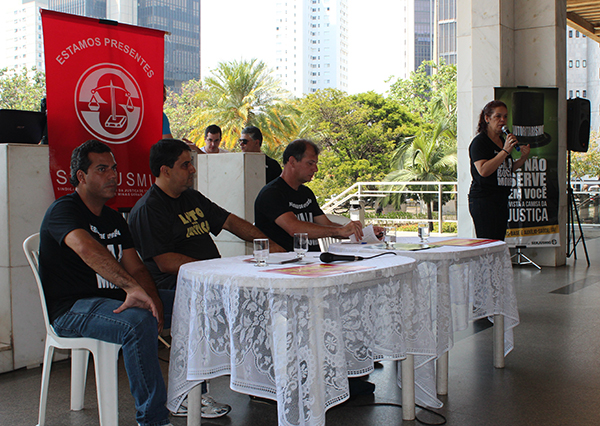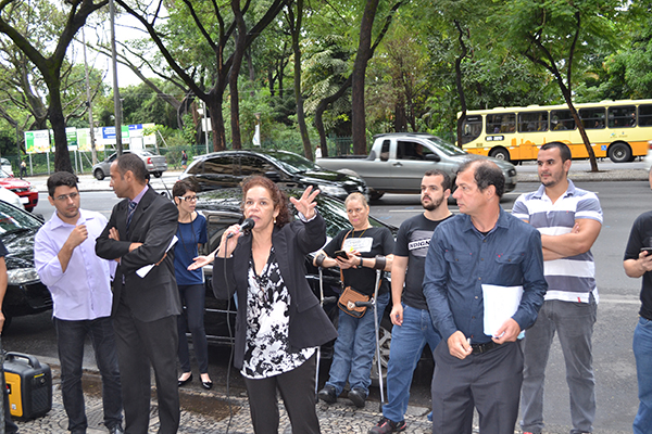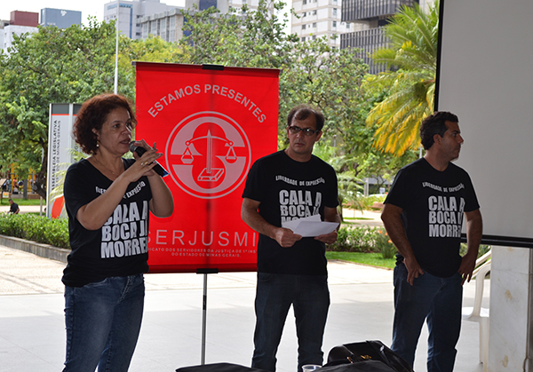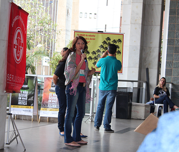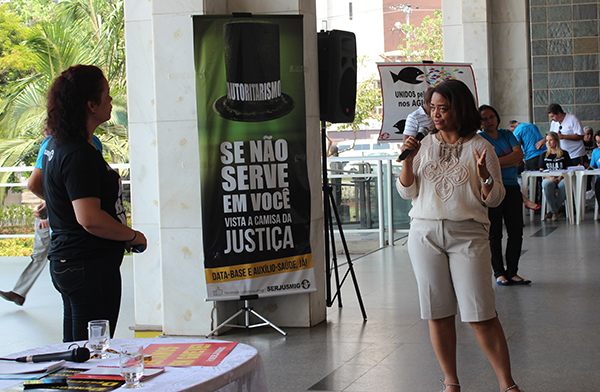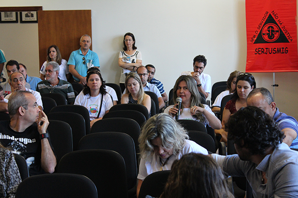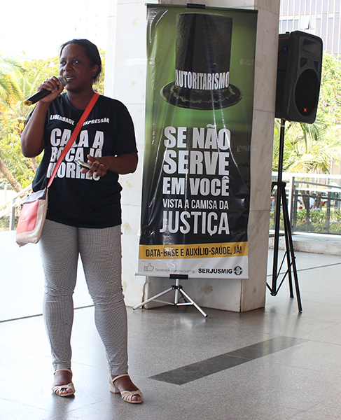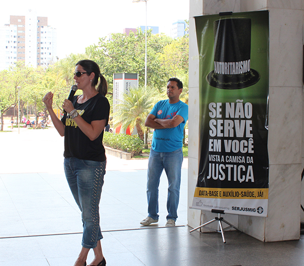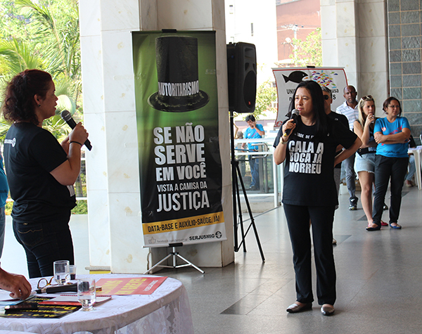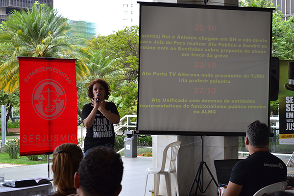 Sandra Silvestrini, presidente do SERJUSMIG, elogiou os presentes e ressaltou que só a presença massiva da categoria vai mostrar ao Tribunal a verdadeira força dos Servidores