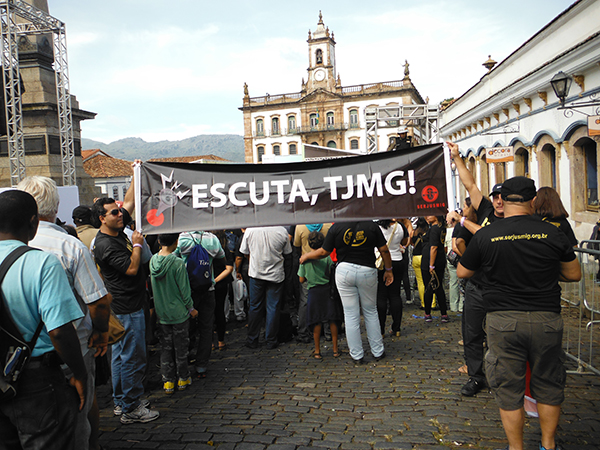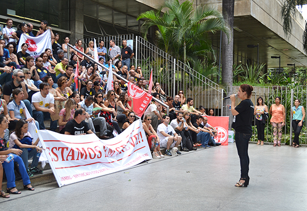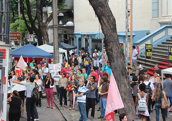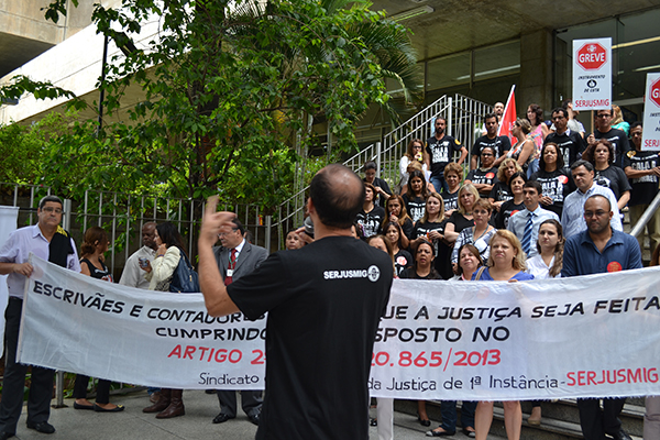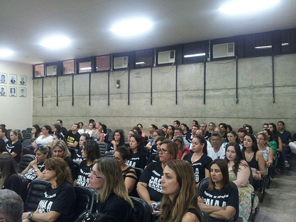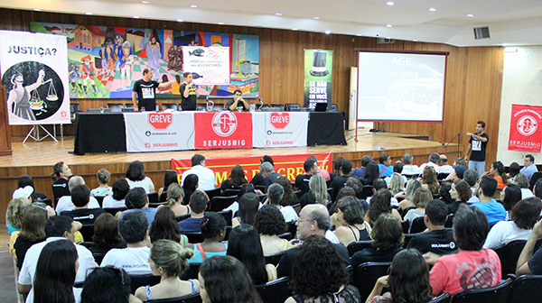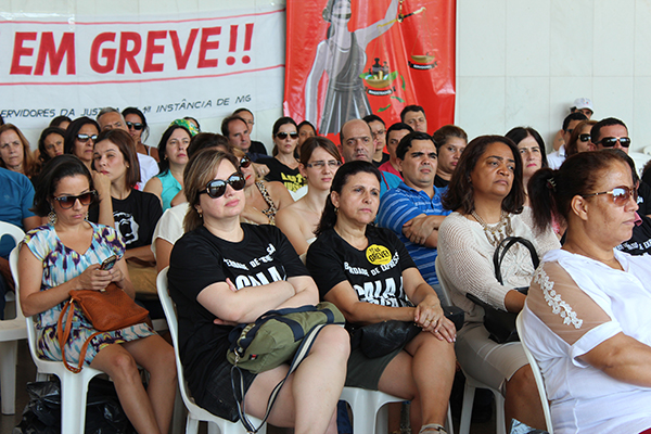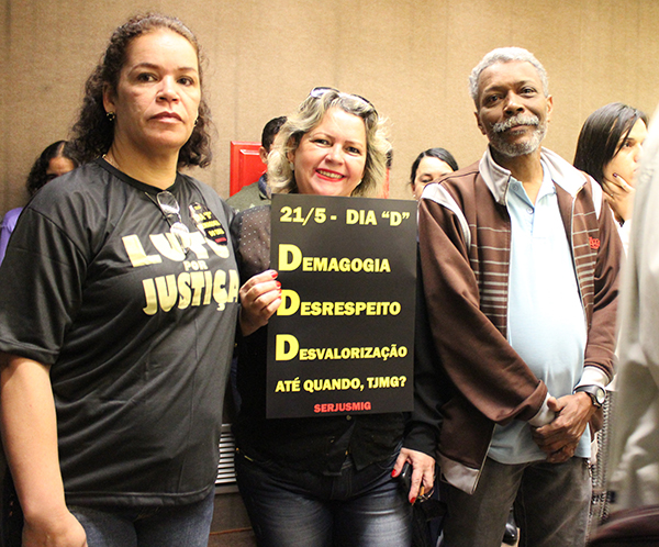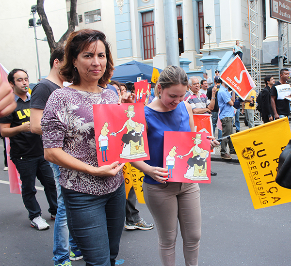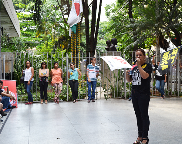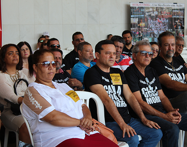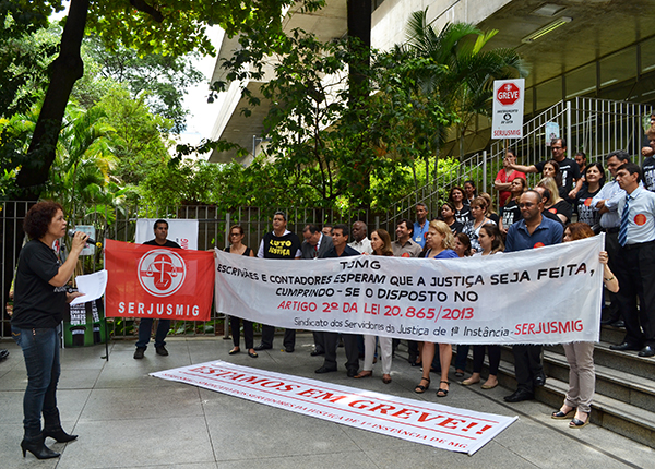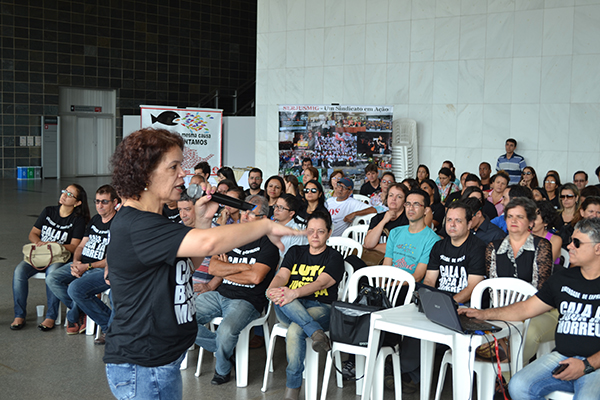 Sandra Silvestrini, presidente do SERJUSMIG, elogiou os presentes e ressaltou que só a presença massiva da categoria vai mostrar ao Tribunal a verdadeira força dos Servidores