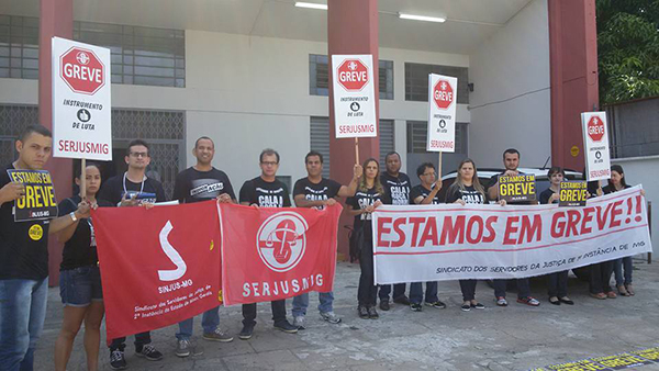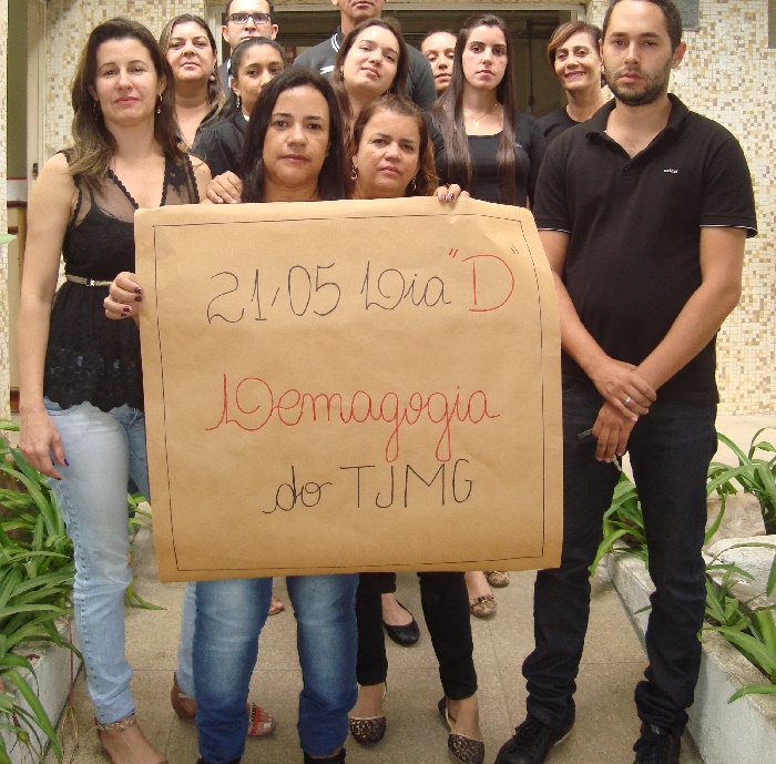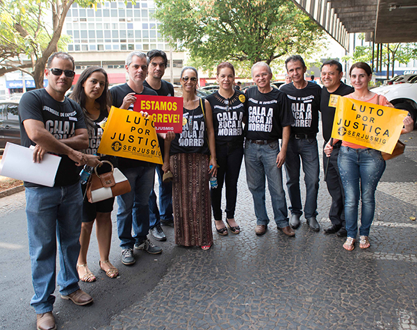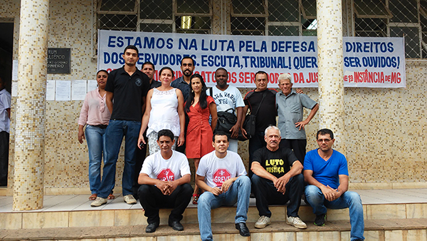 Sindicalistas conversam minutos antes da reunião com o presidente do TJMG