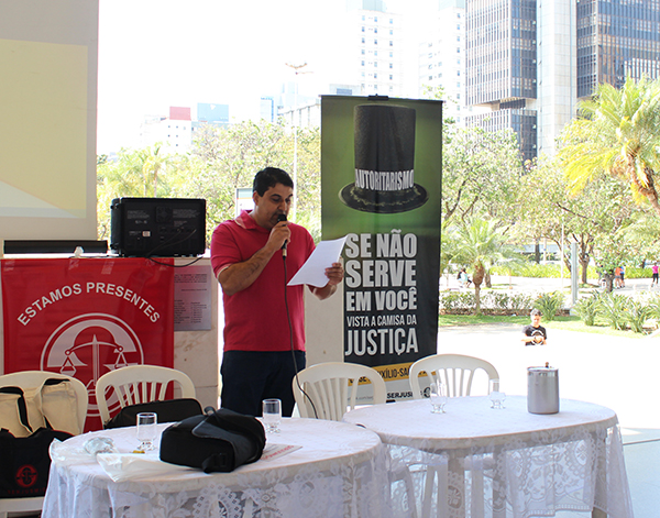 O vice-presidente do SERJUSMIG e presidente da Fenajud, Luiz Fernando Souza, falou aos presentes sobre lutas comuns a todos os servidores dos judiciários estaduais
