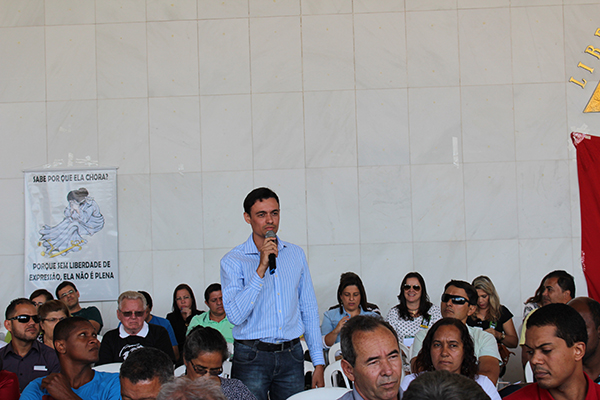 Em seu discurso, o deputado federal Weliton Prado (PT) reforçou seu apoio a todas as reivindicações