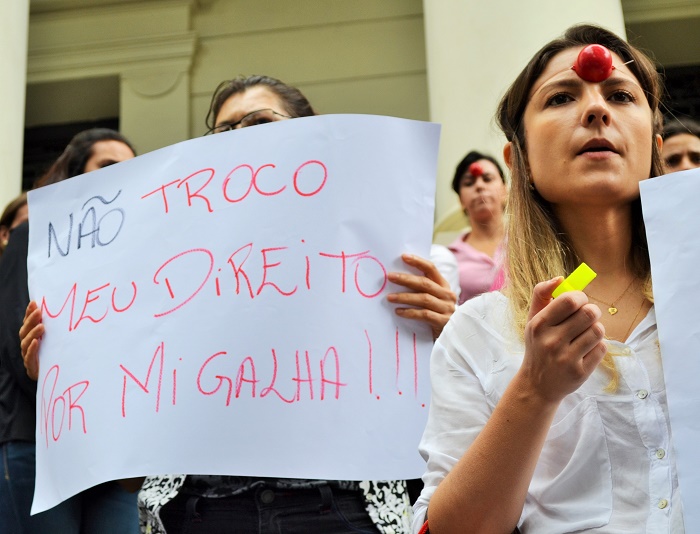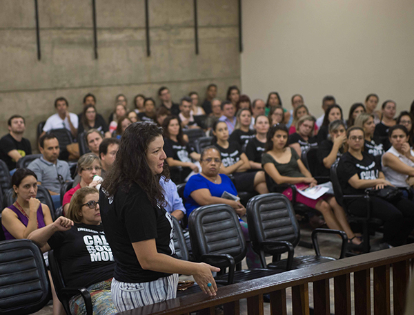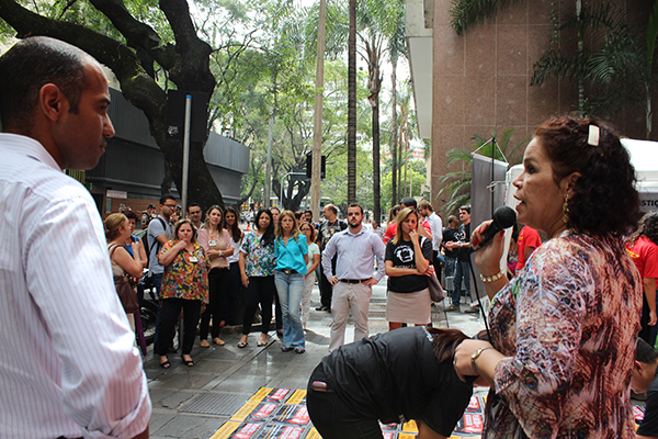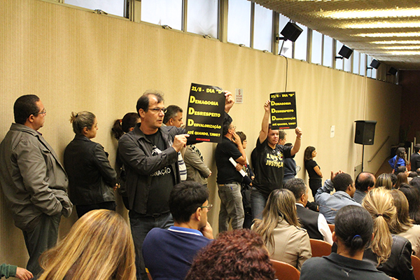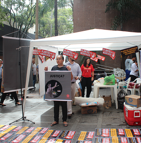 Sandra Silvestrini, ao deixar a Sessão do Órgão Especial, fez questão de explicar aos grevistas o que havia sido votado