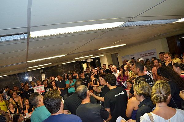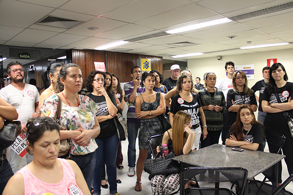 Em frente à porta do gabinete do presidente da ALMG, Adalclever Lopes (PMDB), os Servidores aguardaram ser recebidos pelo parlamentar