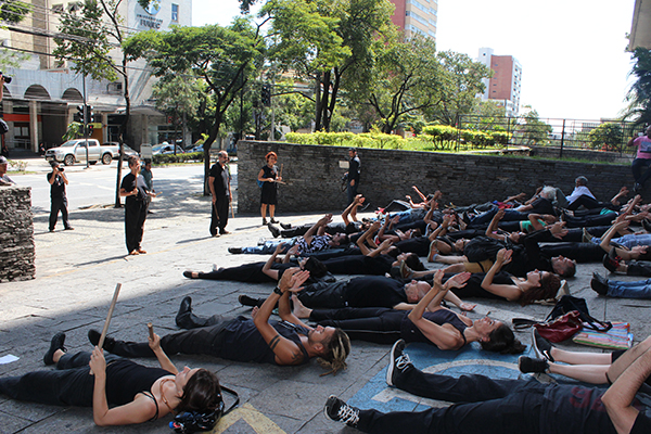 Deitados em frente ao Teatro, artistas se posicionam contra o fechamento do Klauss Vianna