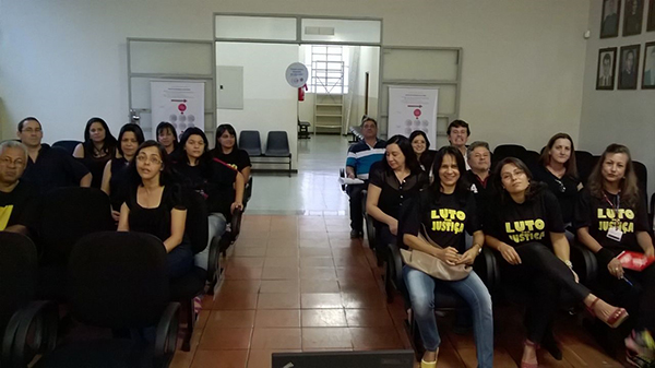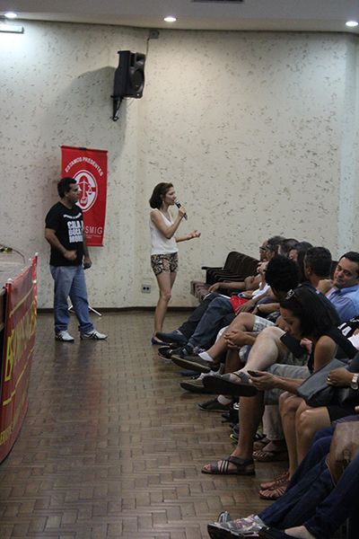 A presidente do Sindicato, Sandra Silvestrini, falou aos presentes sobre as atuais lutas da entidade e sua repercussão