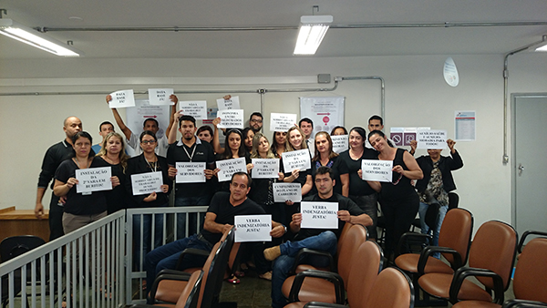 Após a sessão, os dirigentes sindicais falaram aos Servidores presentes sobre a importância da união e presença neste momento de luta