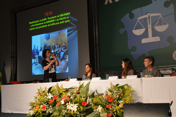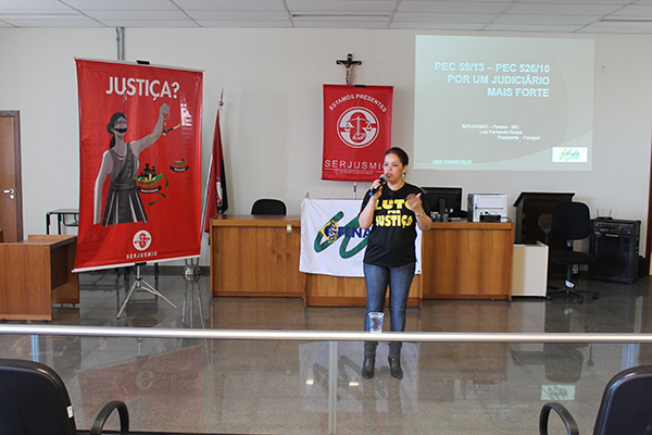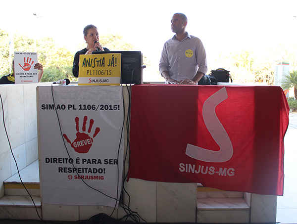 A diretora do SINJUS-MG, Viviane Callazans explicou a importância da luta em torno do PL1106 que, caso aprovado, vai anistiar os colegas grevistas da 2ª instância