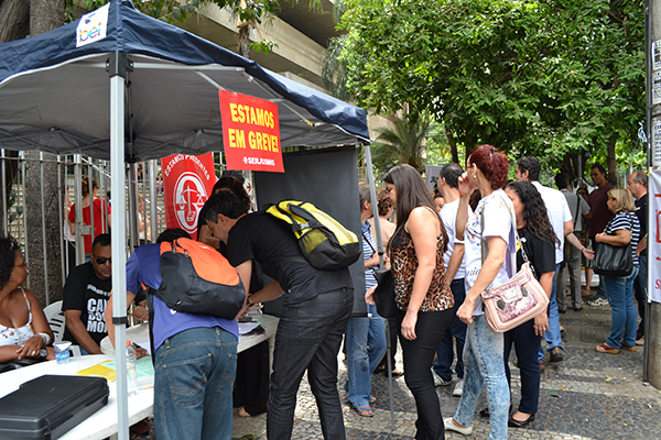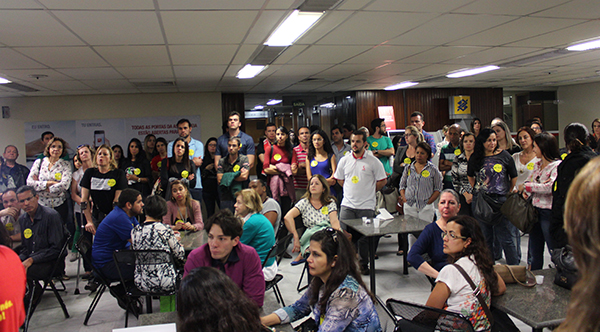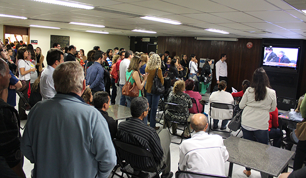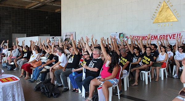 Os Servidores se reuniram no Hall Principal para ouvir sobre os rumos da luta
