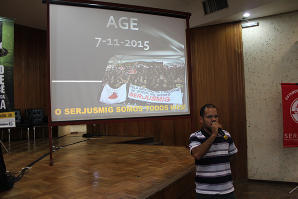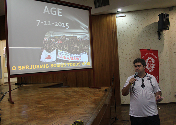 O deputado federal Welinton Prado (PT) fez questão de comparecer à AGE e manifestar seu apoio incondicional à luta da categoria