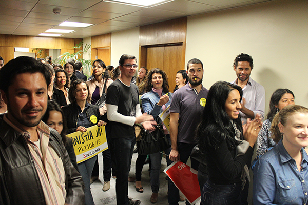 Muitos cartazes e faixas davam o recado aos deputados que participam da CAP: Anistia já!