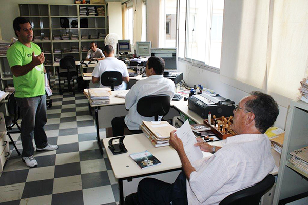 Os diretores do SERJUSMIG, Rui Viana e Antônio Costa, acompanharam a entrevista que a presidente Sandra Silvestrini concedeu ao programa Chamada Geral, da Rádio Itatiaia, comandado pelo jornalista Eustáquio Ramos