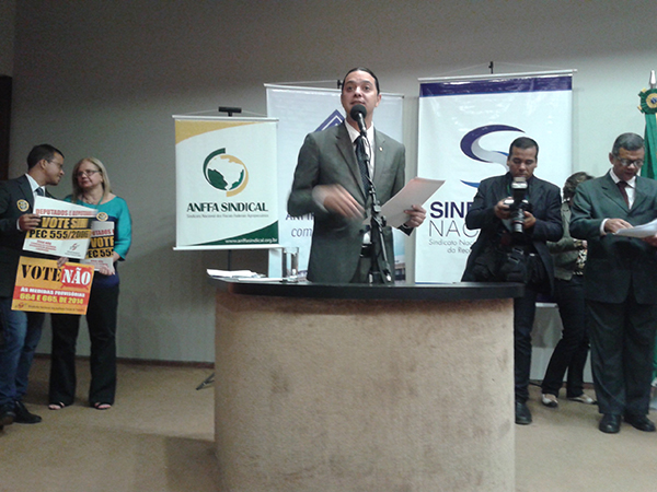 O deputado federal Rodrigo Pacheco (PMDB) esteve presente, falando sobre os atuais projetos em tramitação na Câmara que podem beneficiar os Servidores